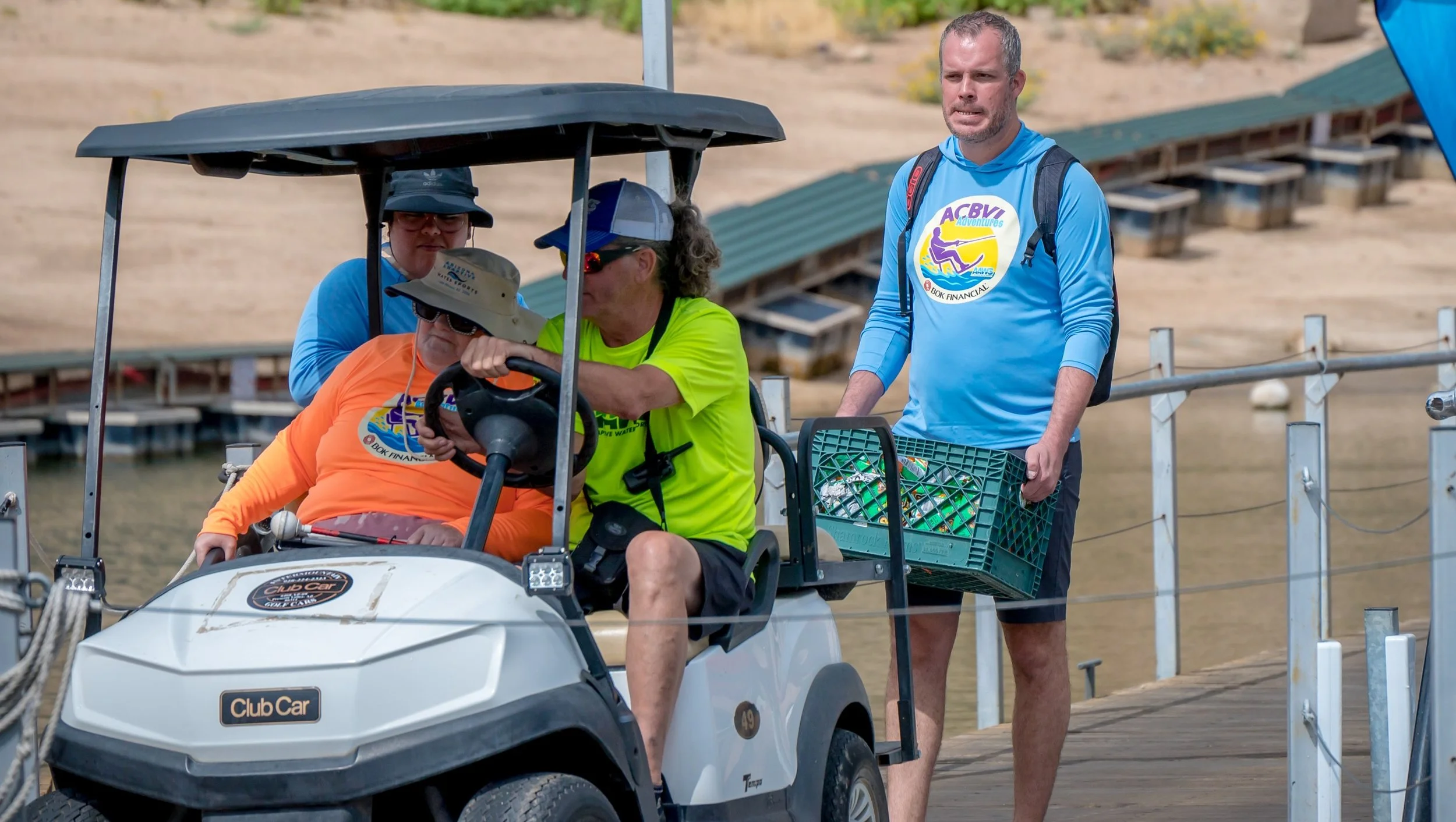 The parking assistant volunteer will be driving a golf cart. They will meet the guests at their vehicles and assist in transferring the athlete and their items to the cart, then driving them to the dock. Also assist with picking up guests at the dock and driving them to their vehicles.